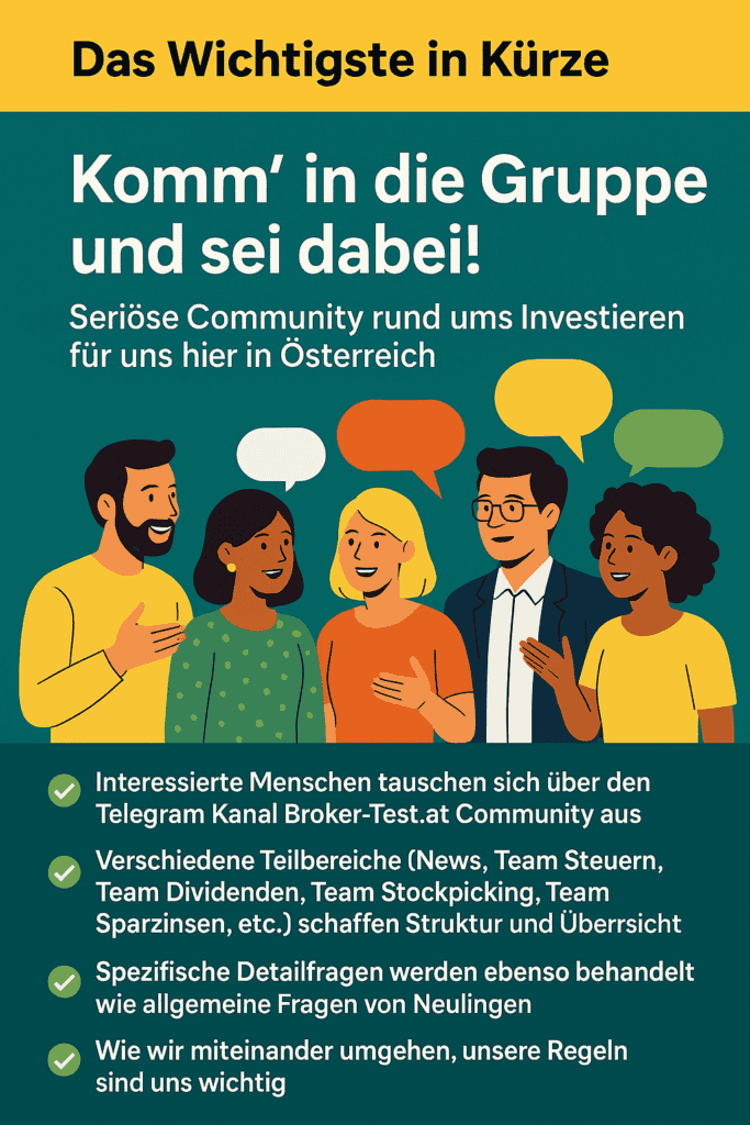 - Komm‘ in die Gruppe und sei dabei! Seriöse Community rund ums Investieren für uns hier in Österreich