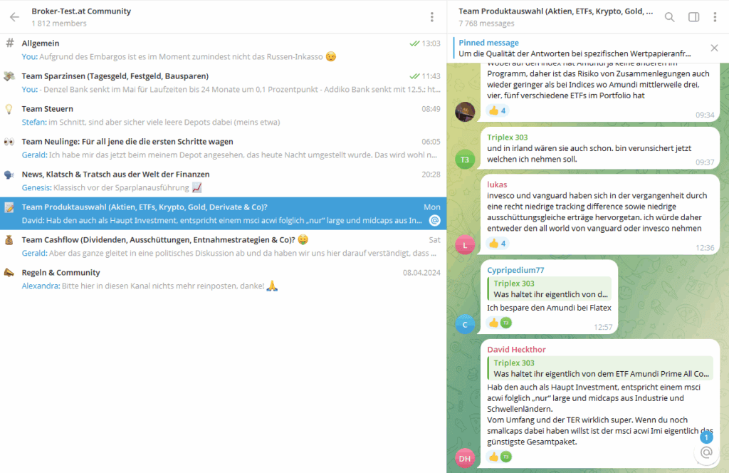 - Interessierte Menschen tauschen sich über den Telegram Kanal Broker-Test.at Community aus
