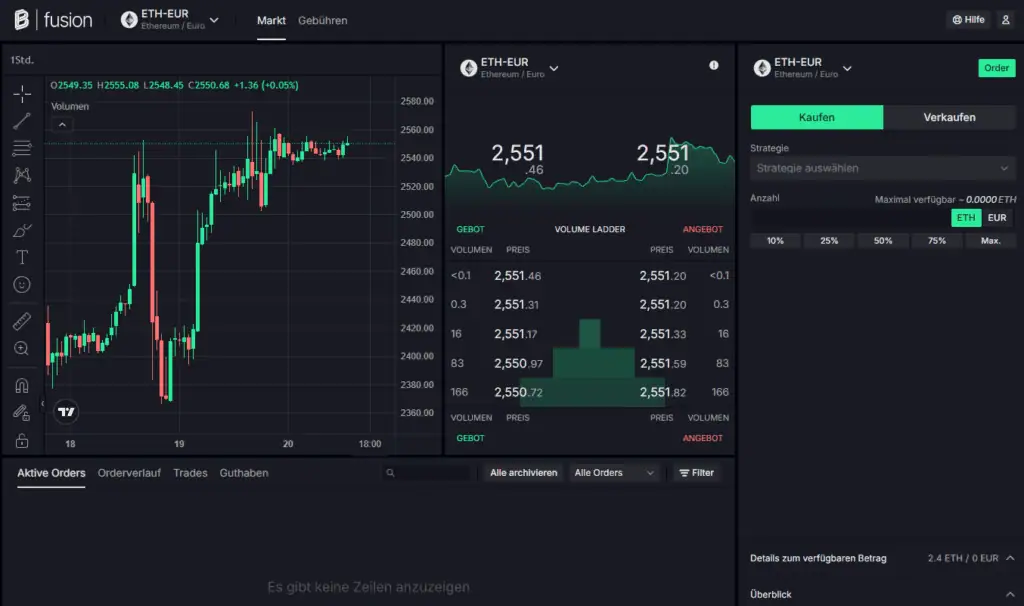 Als günstigere Alternative bietet sich Bitpanda Fusion an. Dort erfolgt der Handel über ein Orderbuch, die Transaktionsgebühr liegt bei 0,25 Prozent pro Trade. Der Kauf bzw. Verkauf von Kryptowerten über Bitpanda Fusion ist aber deutlich komplexer und für Anfängerinnen und Anfänger auch verwirrender. Viele greifen hier dann zu gerne auf den teureren Broker von Bitpanda zurück. Für Nutzerinnen und Nutzer, die den Cashback später wieder verkaufen möchten, kann dies einen spürbaren Unterschied machen, setzt jedoch zusätzliche Marktkenntnisse voraus.