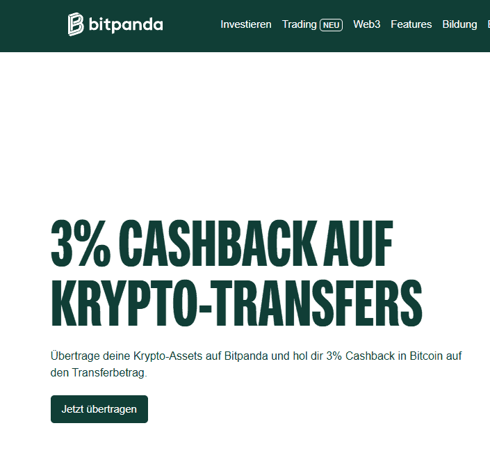 Man könnte meinen, Wettbewerb ist ausgebrochen. Vor kurzem gab es bei Trade Republic ein 2 % Cashback für Kryptotransfers, jetzt bei Bitpanda ein 3 % Cashback. Sieht man sich die Kampagnen genauer an, zeigt sich, viel Werbung, wenig tatsächlicher Vorteil dahinter. Die Details hier: