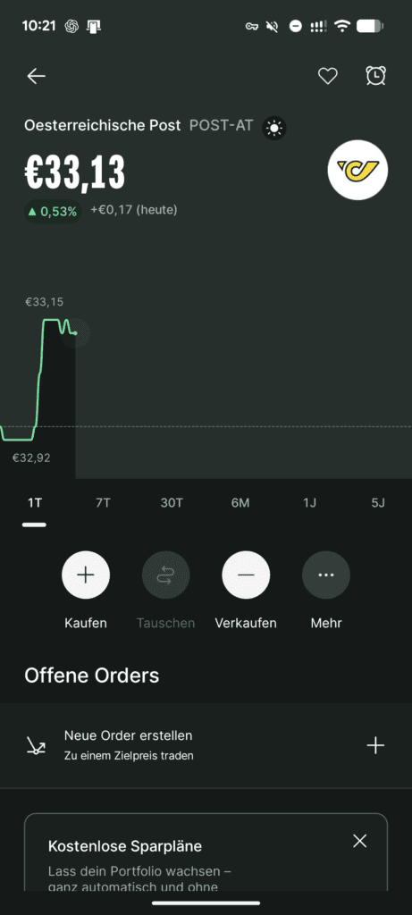Es fallen keine Depotführungsgebühren oder gesonderte Verwahrgebühren für Aktien und ETFs an. Einzahlungen und Auszahlungen sind kostenfrei (z. B. per SEPA). Etwaige Kosten durch Zahlungsdienstleister werden separat angezeigt, aber Bitpanda selbst erhebt keine Gebühren hierfür. Bitpanda verdient zusätzlich über den Spread (die Differenz zwischen Ankaufs- und Verkaufskurs), der im Preis eingepreist ist. Dies kann insbesondere bei weniger liquiden Titeln zu höheren impliziten Kosten führen. Auch außerhalb der typischen Handelszeiten der Börsen wird der Spread hoch sein. Also nicht auf die Idee kommen die Aktie der Österreichischen Post AG um 20:00 Uhr Abends bequem vom Sofa kaufen zu wollen, oder sich die Nvidia Aktie um 7:45 Uhr beim Frühstückskaffee ins Depot zu legen! Hier verdienen die Broker und Handelsplätze zu unseren Ungunsten.