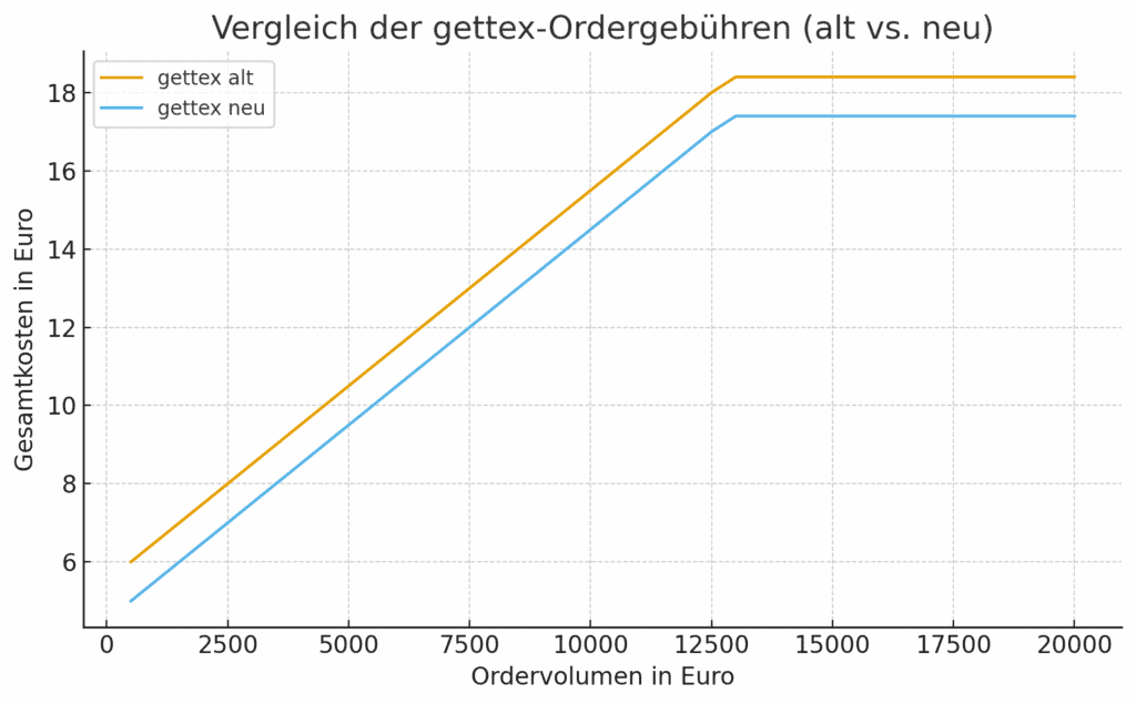 Während gettex bei kleinen bis mittleren Orders etwas teurer sein kann, wird gettex ab höheren Volumina zunehmend attraktiver – vor allem, weil die Provision früher gedeckelt ist.