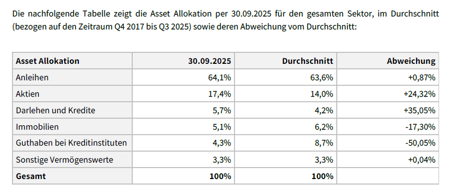 Die Kennzahlen der überbetrieblichen Pensionskassen werden nach unterschiedlichen Veranlagungstypen dargestellt, die von defensiv bis dynamisch reichen. Insgesamt werden fünf Kategorien unterschieden. Die Zuordnung einer Veranlagungs- und Risikogemeinschaft richtet sich dabei nach dem jeweiligen Aktienanteil im Portfolio. Liegt dieser unter 16 Prozent, gilt die Veranlagung als defensiv. Bei einem Aktienanteil zwischen 16 und unter 24 Prozent spricht man von einer konservativen Ausrichtung. Ein Anteil von 24 bis unter 32 Prozent wird als ausgewogen eingestuft, während Werte zwischen 32 und unter 40 Prozent als aktiv gelten. Ab einem Aktienanteil von 40 Prozent erfolgt schließlich die Zuordnung zum dynamischen Veranlagungstyp.