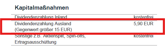 So sah das bisherige Preis- und Leistungsverzeichnis bei Flatex aus – auf ausländische Dividendenzahlungen über 15 Euro fielen 5,90 Euro Gebühr an.