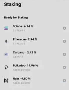 Für ausgewählte Kryptowährungen bietet Trade Republic Staking an. Dabei werden Coins zur Validierung von Blockchain-Transaktionen bereitgestellt. Im Gegenzug erhalten Kundinnen und Kunden eine variable Rendite, deren Höhe vom jeweiligen Netzwerk abhängt. Die Staking-Funktion steht direkt in der App zur Verfügung.