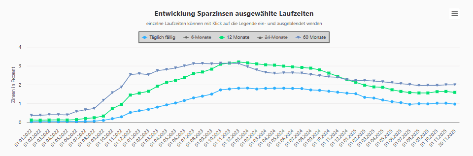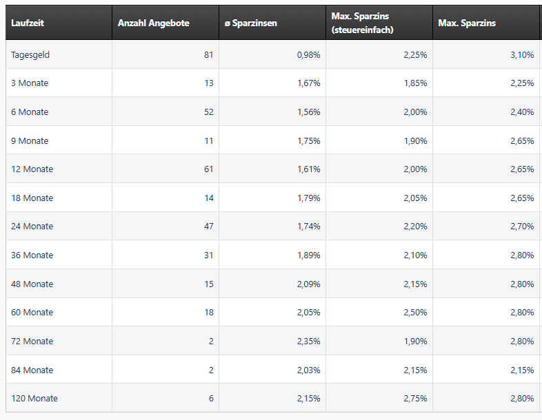 - Durchschnittliche Tagesgeldzinsen: etwa 0,98 Prozent