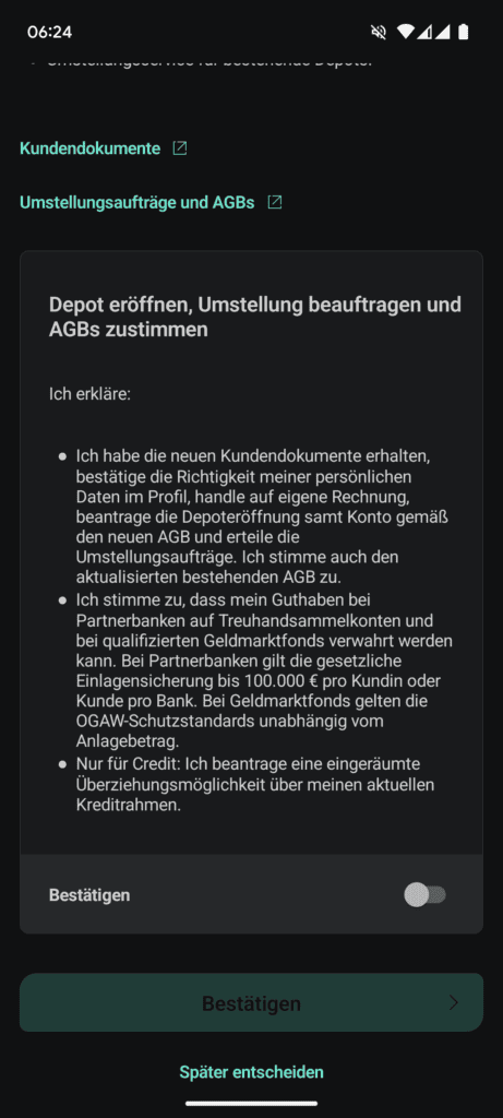 Bestandskunden und Bestandskundinnen: Der schnellste Weg, um vom neuen Angebot zu profitieren, ist, den neuen Vertragsbedingungen zuzustimmen. In wenigen Wochen kann das neue Angebot dann automatisch genutzt werden so der deutsche, nicht steuereinfache Neobroker.