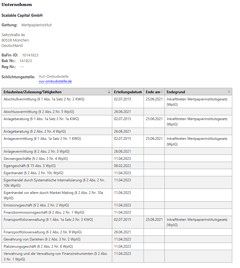 Eigenes Konto, eigenes Depot, wann wird Scalable Capital so wie auch Trade Republic eine Bank. Entsprechende Berichte in den Medien gab es dazu immer wieder und der Abschluss soll kurz bevor stehen, das war aber schon vor Wochen so. In der Unternehmensdatenbank der BaFin findet sich dazu noch kein Update und die Scalable Capital GmbH ist weiterhin als Wertpapierinstitut gelistet.
