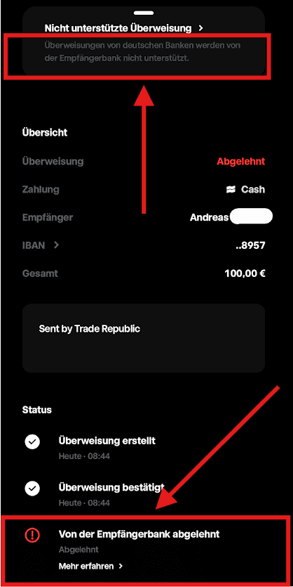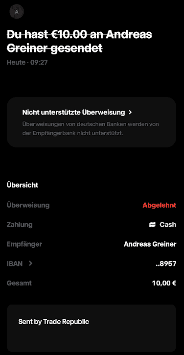Interessanterweise treten die Probleme offenbar nur bei Überweisungen auf easybank-Girokonten auf. Überweisungen von Trade Republic auf ein easybank-Sparkonto funktionieren hingegen problemlos. Auch in der umgekehrten Richtung – also von easybank auf Trade Republic – gibt es keine Schwierigkeiten.
