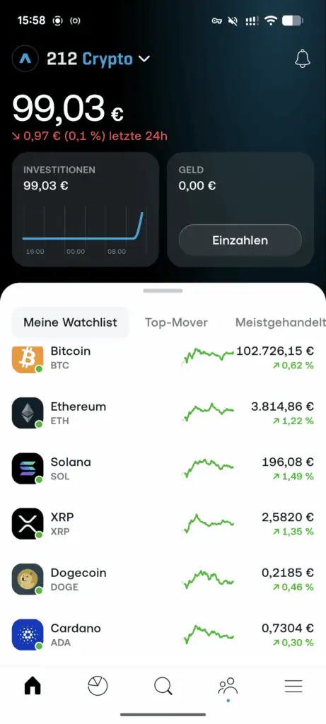 Staking, DeFi-Dienste, Airdrops oder ähnliche erweiterte Protokolle werden von Trading 212 nicht unterstützt. Ebenso ist eine Übertragung von Kryptowährungen nicht möglich. Ein- oder Auszahlungen in Form von Coins werden nicht angeboten, die Nutzung beschränkt sich auf Kauf, Halten und Verkauf innerhalb der Plattform. Das kennen wir auch schon von anderen Plattformen unter anderem die beiden steuereinfachen Plattformen Trade Republic als auch Flatex bieten im Bereich der Kryptowährungen auch nicht die Möglichkeit zu staken oder die Coins zu transferieren.