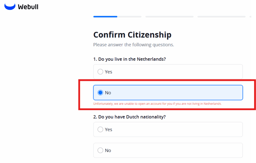 Wird eine Eröffnung bei Webull.eu probiert, so scheitert man sehr bald: