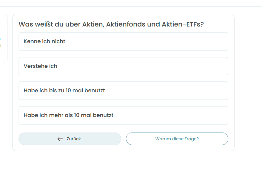 - maßgeschneidertes Portfolio bestehend aus ETFs und ETCs, auch nachhaltige Produkte im Angebot