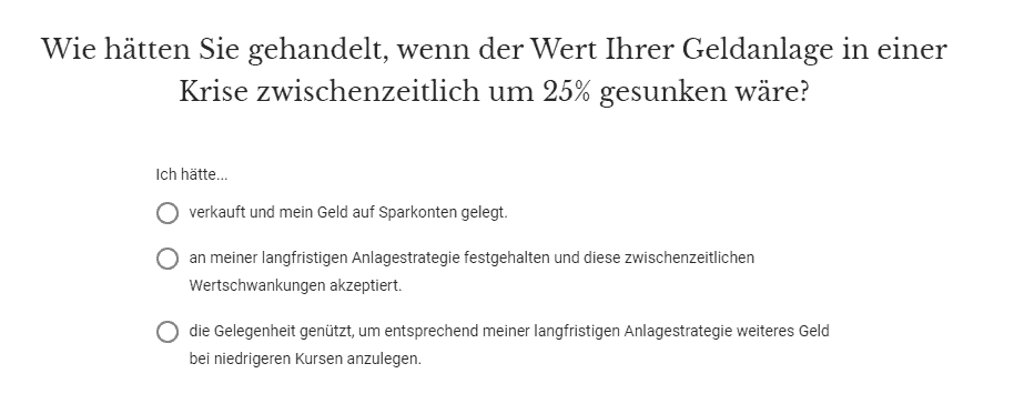 Servus Karl, – bei Savity gibt es dann noch weitere Unterteilungen, ich vermute mal, füllst du dein Risikoprofil bei Savity aus, würde am Ende NICHT dein Wunsch ETF bei Flatex herauskommen sondern eine andere Veranlagung (okay, weiter unten dann die Auflösung mit „ausgewogen“ -> siehe Zeilen weiter unten – 5-10 Jahre… eher 10-15 Jahre würde ich als Nicht-Anlageberater sagen. Die letzten 10 Jahre sind Traumjahre, da gabs schon andere 10 Jahre. 5 Jahre ist meines Erachtens zu kurz gegriffen. – bei Savity gibt es von sicherheitsbewusst bis zu aggressiv – Savity ausgewogen und dein Wunsch-ETF sind 2 verschiedene Risikoprofile. Es… Weiterlesen »