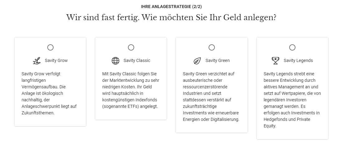 Das Angebot von Savity kann sich sehen lassen. Sowohl die Portfolios als auch die dahinterliegenden Strategien haben Potenziale. Dass sich Savity nicht ausschließlich auf ETFs fokussiert, auch wenn sich dies in den Kosten niederschlägt, werten wir ebenfalls als Pluspunkt.
