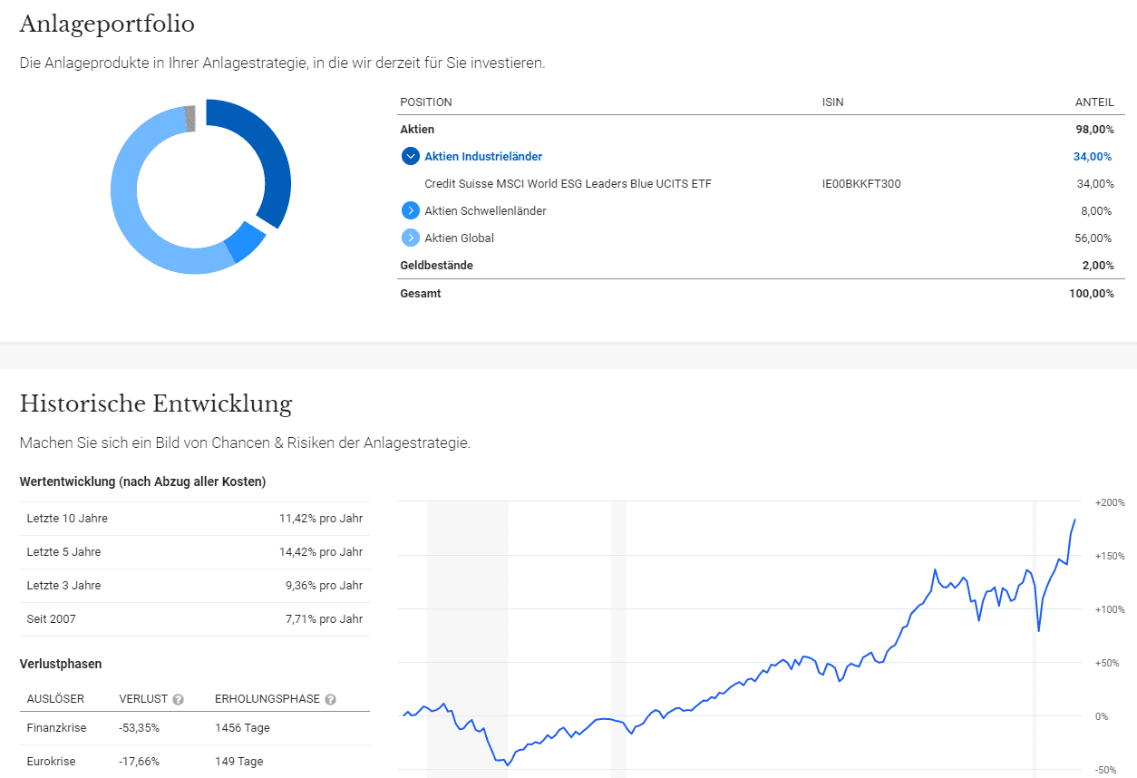 - je nach Portfolio zwischen 0,12 % und 0,69 % Produktkosten im Jahr