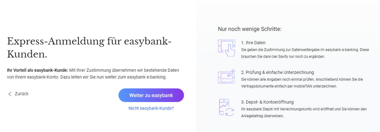 Savity bietet als professioneller Vermögensverwalter mehrere Anlagestrategien an. Mit seinem Angebot richtet sich Savity an alle Anleger. Als Depotbank fungiert die BAWAG/Easybank für Kunden einer dieser Banken, für alle andern Neukunden die Schelhammer Captial Bank. Die BAWAG hält auch eine Beteiligung an Savity. Daher ist es auch keine große Überraschung, dass es Savity bei der BAWAG und bei der Direktbankenmarke der BAWAG, der Easybank, gibt.