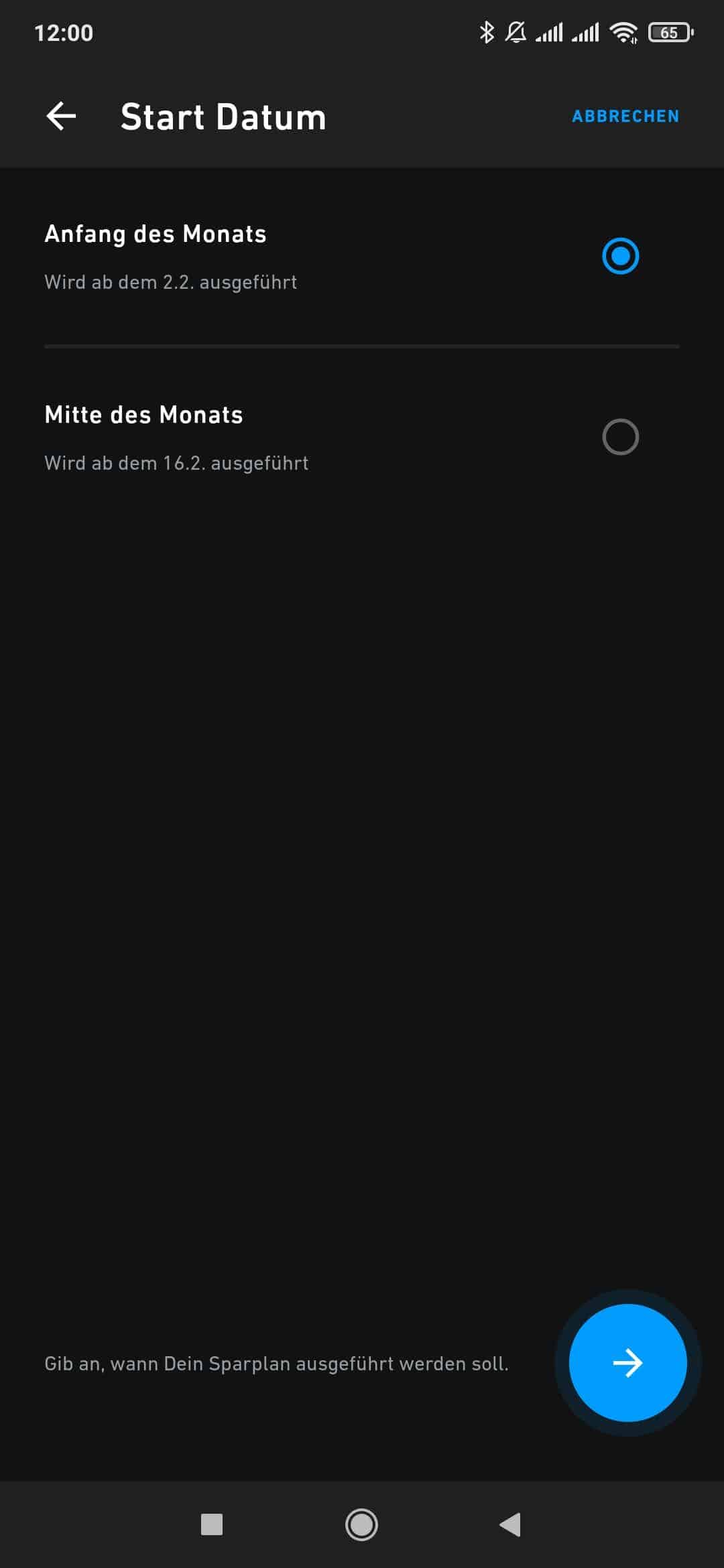 Die gewünschte Sparrate wird festgelegt und wie oft es zur Ausführung kommen soll. Danach noch bestätigen, und fertig ist der Aktien Sparplan.