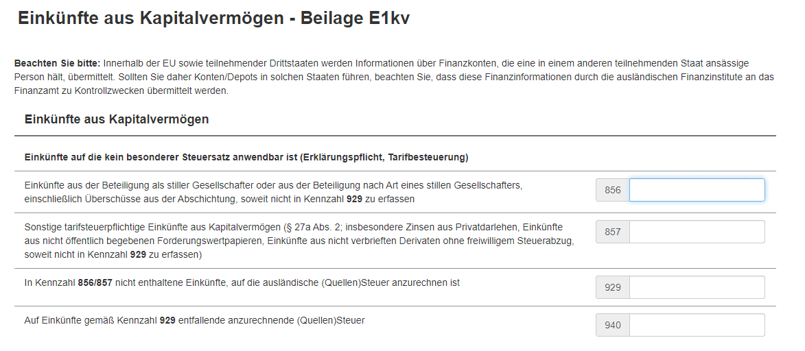 Einkünfte aus Kapitalvermögen - Beilage E1kv