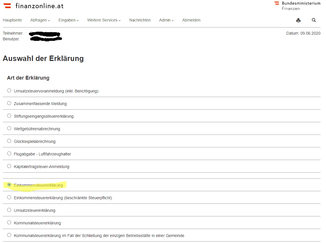 Ich hatte angenommen ich mache meine Arbeitnehmerveranlagung und dann als separaten Schritt die Einkommenssteuererklärung.
